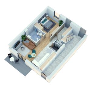 15Apartament w Mikołajkach o pow. użytkowej 47 m2 w drugiej linii zabudowy od J. Mikołajskiego. Nieruchomość w pełni ...
